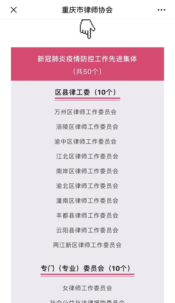 在这场没有硝烟的战争中,捷讯律师以高度的责任心与使命感,为全民抗疫、为打赢疫情攻坚战作出了积极的贡献,受到社会各界的好评。被重庆市律师协会评为“新冠肺炎疫情防控工作”先进集体。