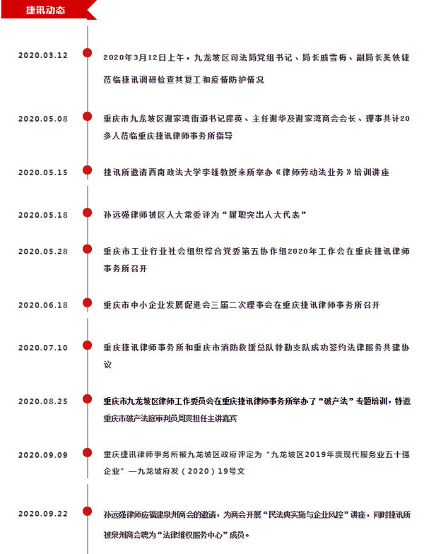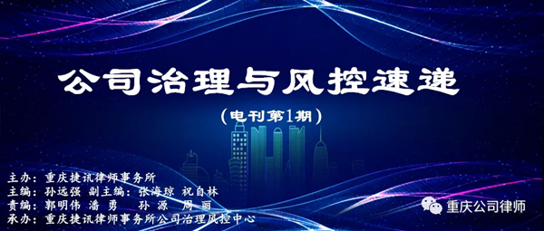 “公司治理与风控速递”是由重庆捷讯律师事务所主导、重庆捷讯律师事务所公司治理风控中心承办,是为了帮助顾问单位和部分商协会和友好单位防范法律风险,避免出现重大经济损失,确保企业健康持续发展的一份电子期刊。该期刊设捷讯动态、新法速递、劳动用工、合同风控、风险提示、以案说法等栏目,把律师在服务过程中以及司法实践中的发现的企业风险与案例成败原因加以提炼和总结,从而避免企业犯类似错误。期刊内容将涉及公司设立与章程设计、公司劳动用工、合同争议与管理、公司治理、投融资并购风控、建设工程、刑事风控、公司清算注销等公司一生主要法律风险。本刊坚持以完善公司治理为出发点,以公司风险预防为主要目的,旨在为企业及其股东、高级管理人员等在公司治理与风险控制方面提供较为全面的参考与帮助!