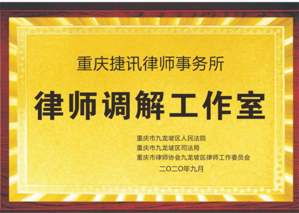 2020年11月5日,九龙坡区法院、区司法局、区律工委联合举办的九龙坡区律师调解工作室启动暨授牌议式在重庆远沐律师事务所隆重举行。会上,对重庆捷讯律师事务等八家律所设立为律师调解工作室。捷讯所刘艳、房美娟、魏华三名合伙人被聘为调解员。同时,捷讯所派出一名律师入驻九龙坡区法院驻院律师调解工作室,参与诉前化解、信访调解、代理申诉工作。