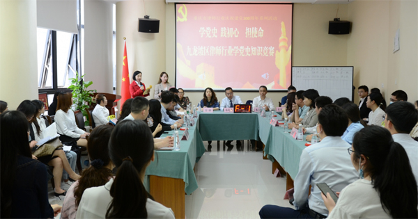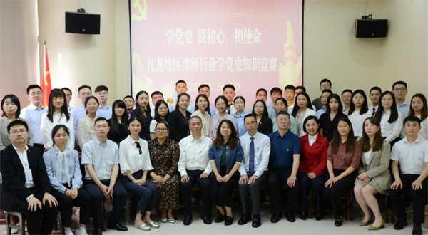 本次学党史知识竞赛由九龙坡区律师行业党委和律工委联合开展,并在重庆捷讯律师事务所举办。九龙坡区司法局、律师行业党委、律工委领导及16个党支部64名律师参加比赛。